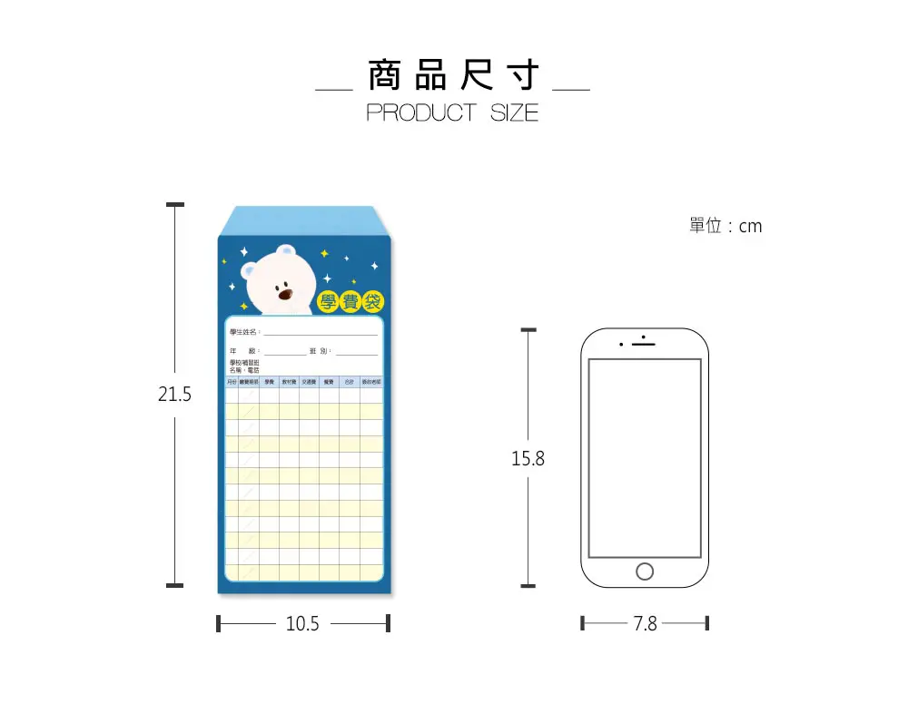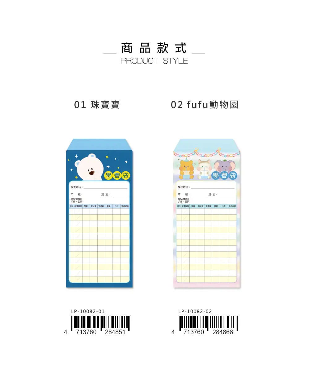 • 印有可愛圖案的學費袋