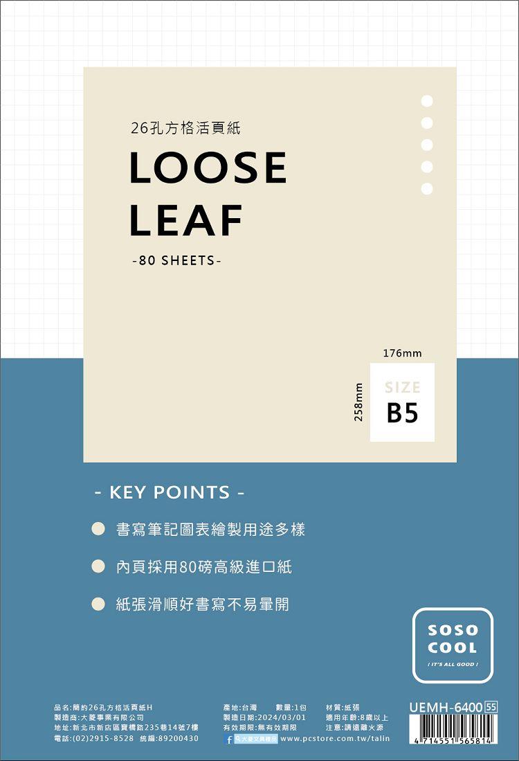 簡約26孔方格活頁紙H