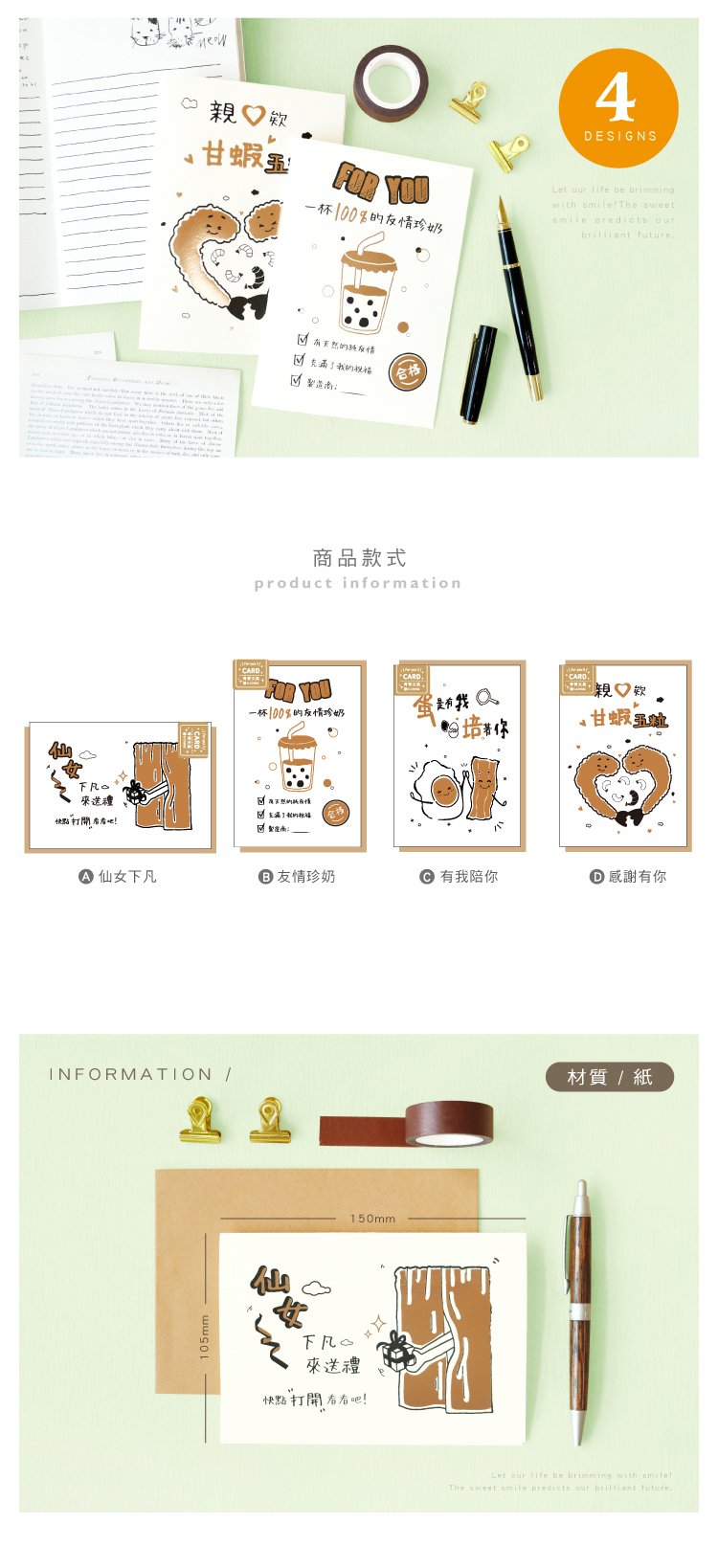 ◎封面質感燙印X溫暖小插圖【商品說明】 1. 青青 簡單生活系列 CGC-335 日常文藝萬用卡(150X105X0.5mm) 2. 四款可愛圖案可選擇 3. 封面質感燙印X溫暖小插圖