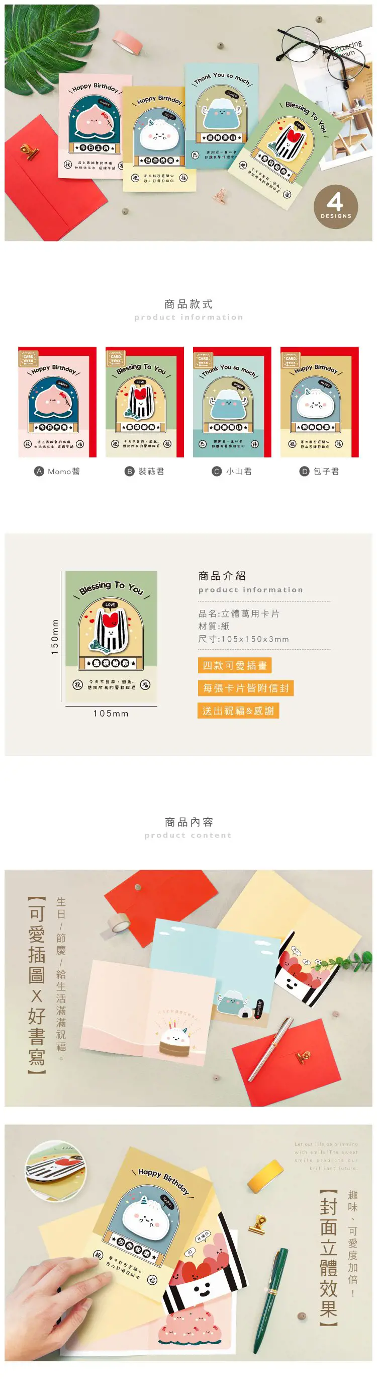 【商品說明】 1. 青青 小呸角系列 CGC-361 立體萬用卡片(105X150X3mm) 2. 共四種款式