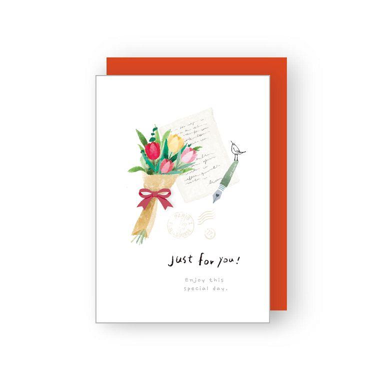 花語蝴蝶結祝福卡(信與花束)