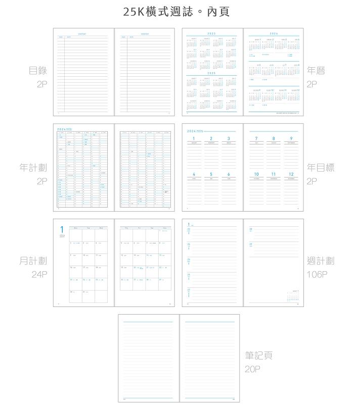 2024年25K彩糖蒔光軟背精裝橫式週誌-涼水藍