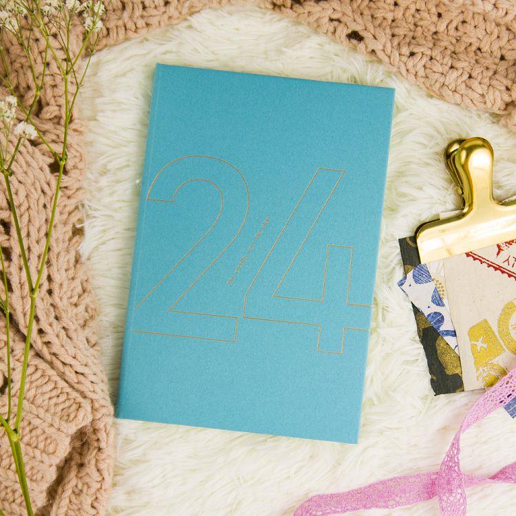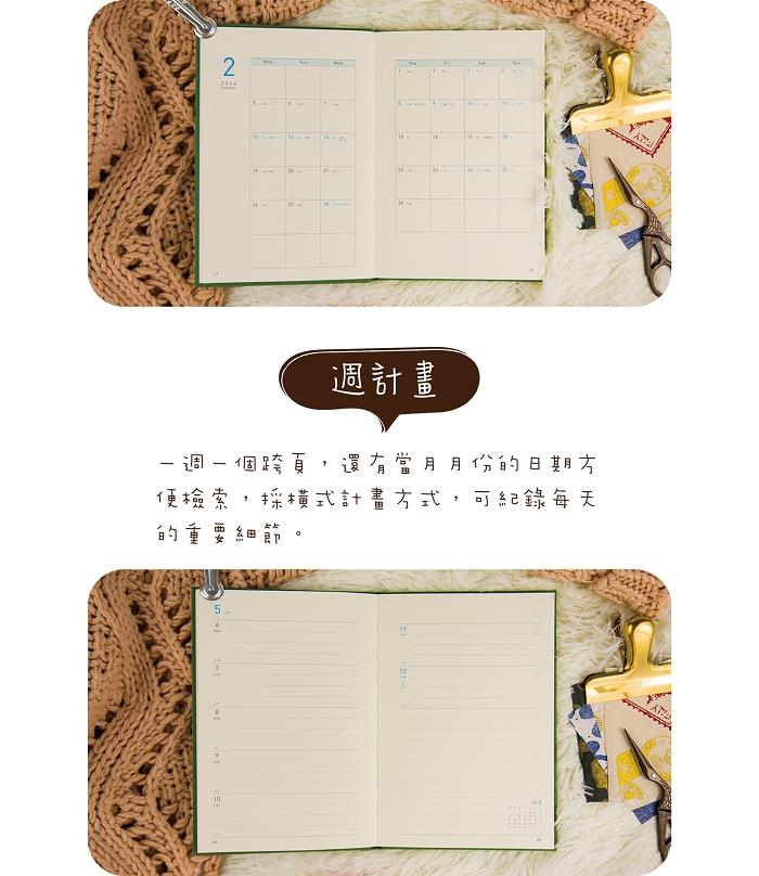 2024年32K彩糖蒔光軟背精裝橫式週誌-涼水藍