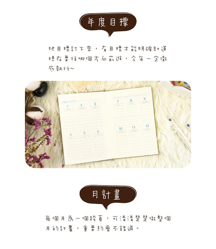 2024年50K彩糖蒔光軟背精裝橫式週誌-日曬黃
