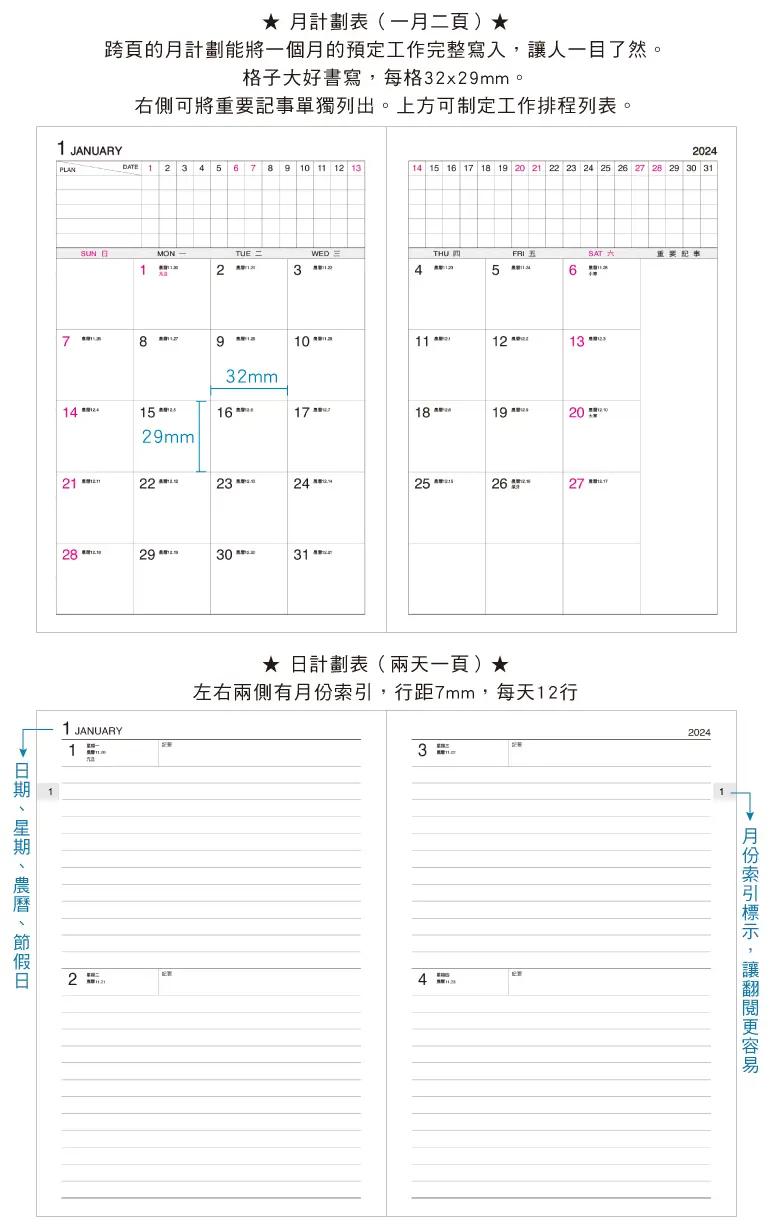 § 規格:15x21.8x1.5cm,120張/240頁。