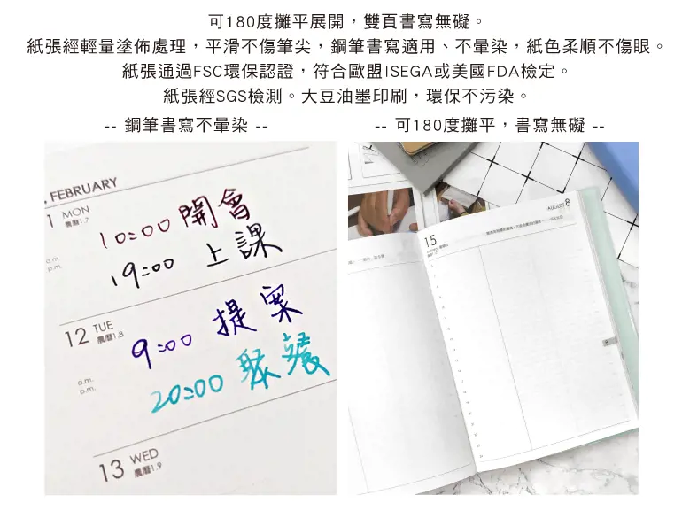 § 紙張經輕量塗佈處理,鋼筆書寫適用,紙色柔順不傷眼。
