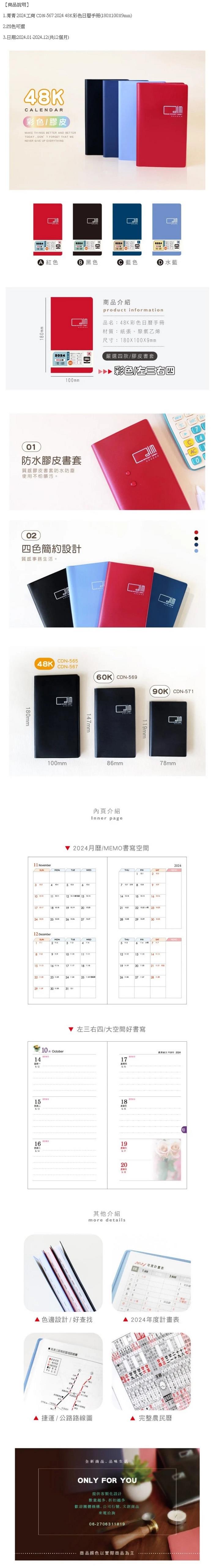 ◎青青 2024工商 CDN-567 2024 48K彩色日曆手冊(180X100X9mm)