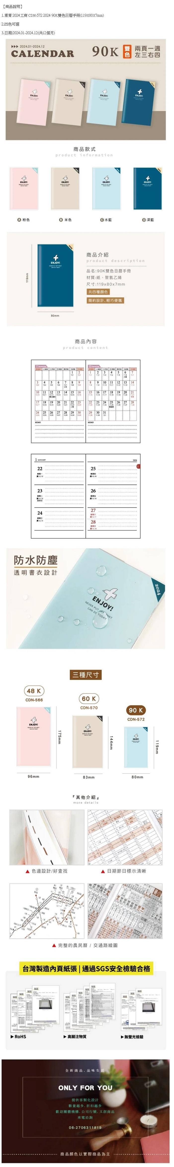 ◎青青 2024工商 CDN-572 2024 90K(透)雙色日曆手冊(119X80X7mm)