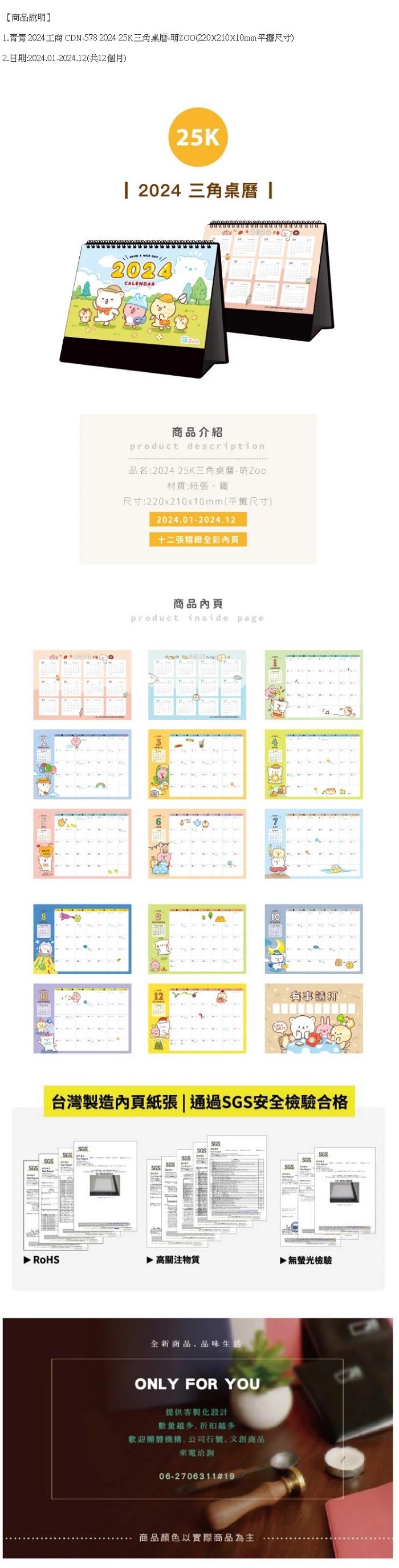 ◎青青 2024工商 CDN-578 2024 25K三角桌曆-萌ZOO(220X210X10mm平攤尺寸)