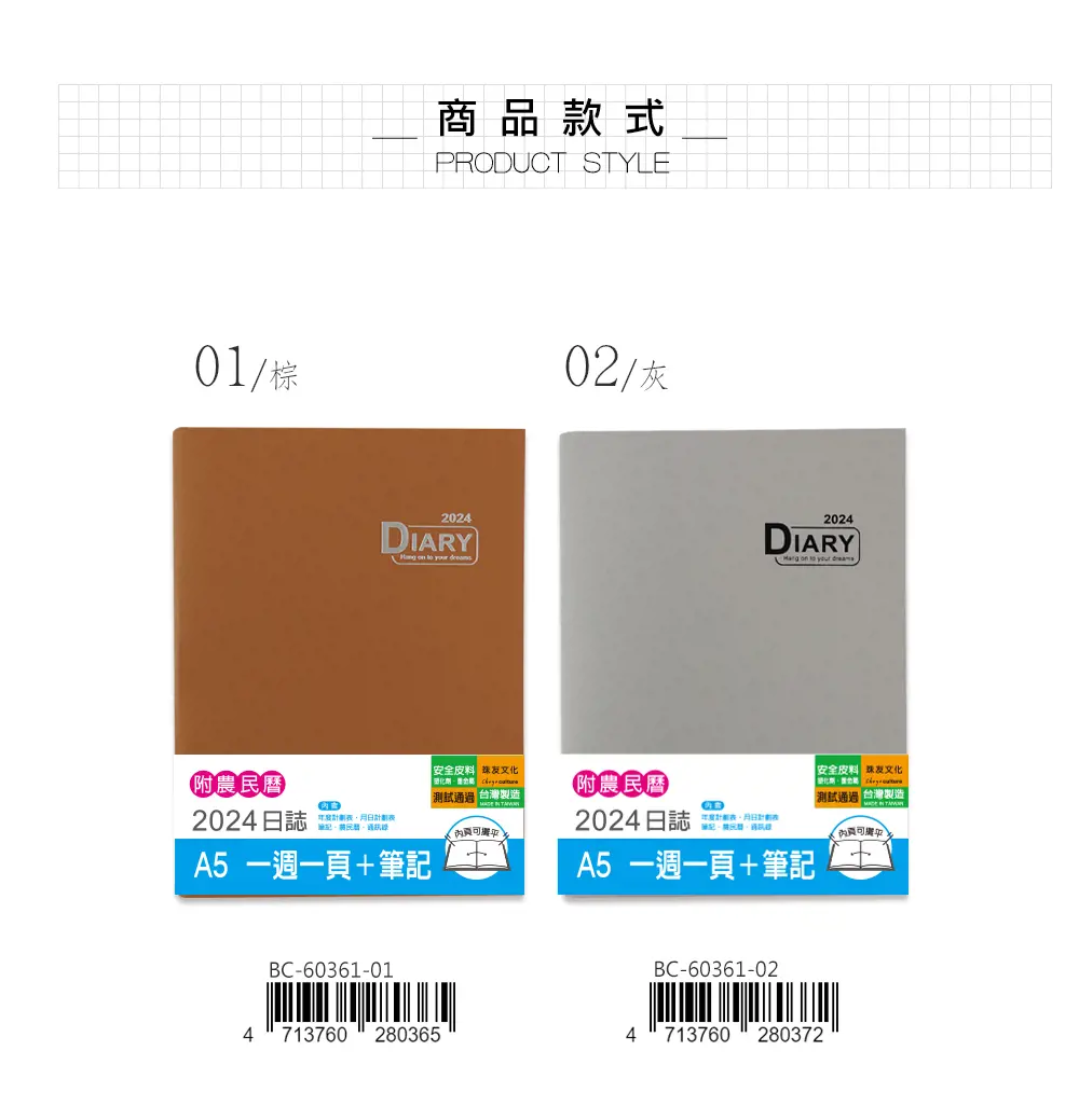 (特價)2024年A5日誌內頁/1週2頁-棕