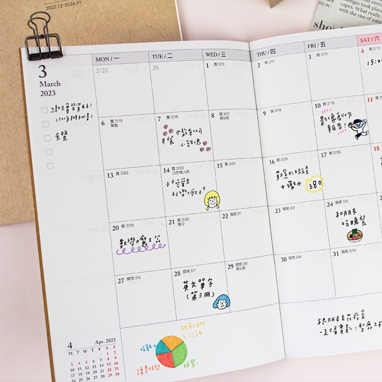 - 月計劃可記錄14個月2023年12月~2025年1月
