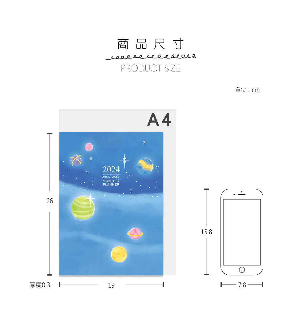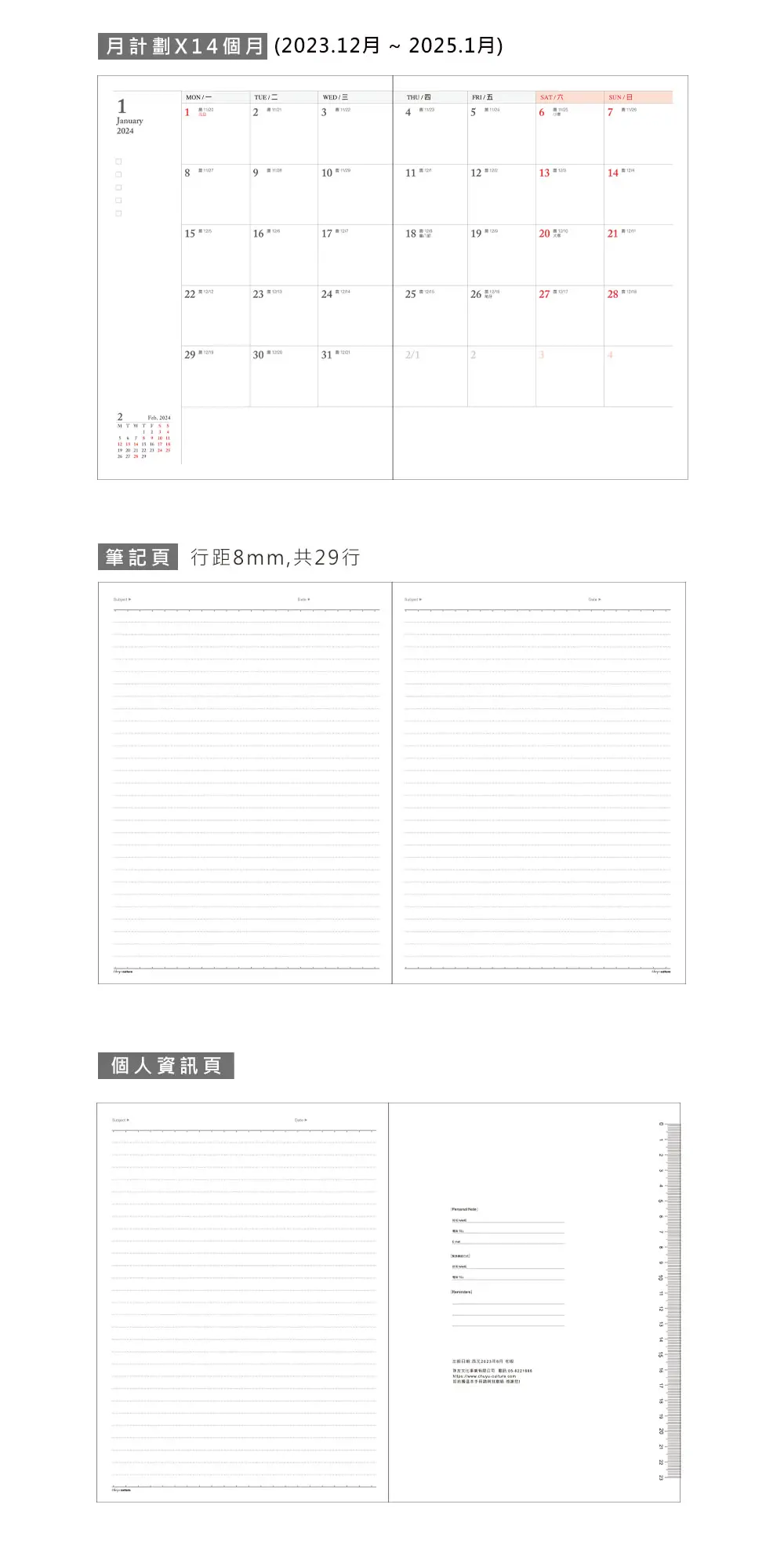 - 月計劃可記錄14個月2023年12月~2025年1月