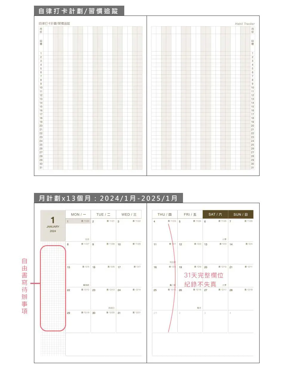 (特價)2024年A5日誌(1日1頁/方格)-繡球