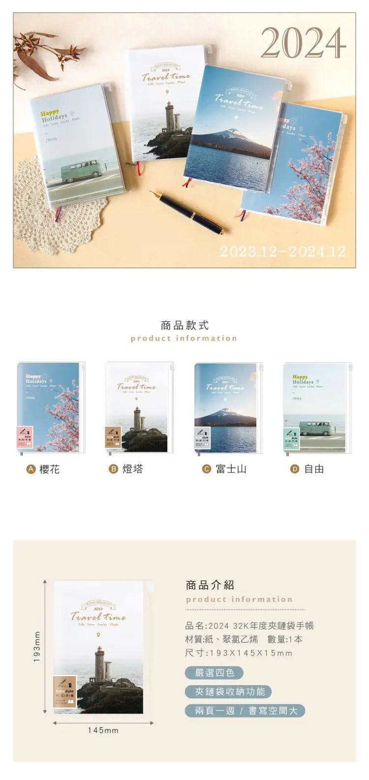 (特價)2024 32K年度夾鏈袋手帳(自由)旅行時光
