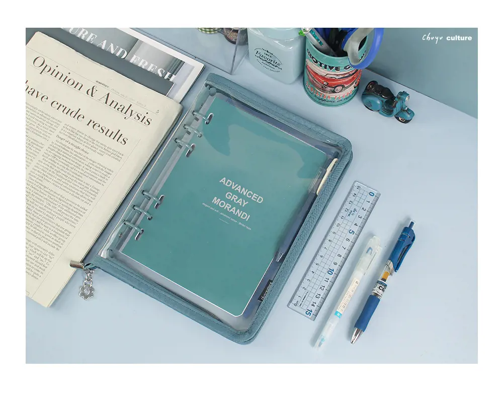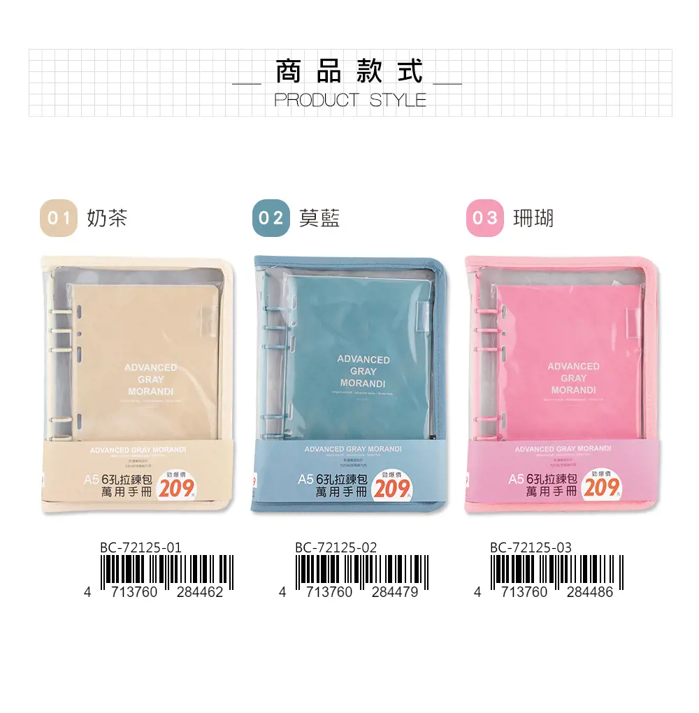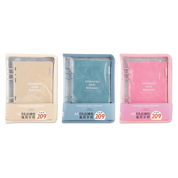 - 莫蘭迪色拉鍊包邊+6孔鐵夾,美觀實用