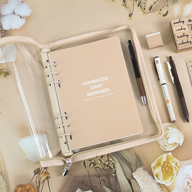 (特價)A5 6孔拉鍊包萬用手冊-奶茶