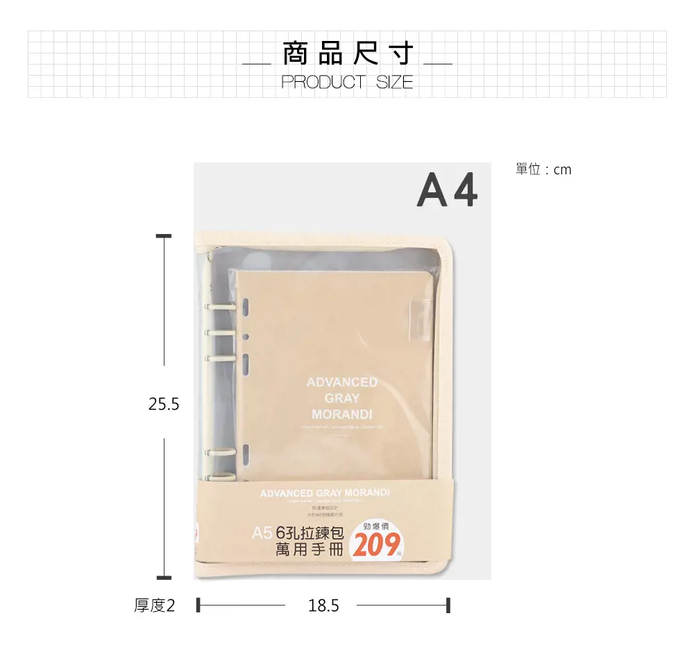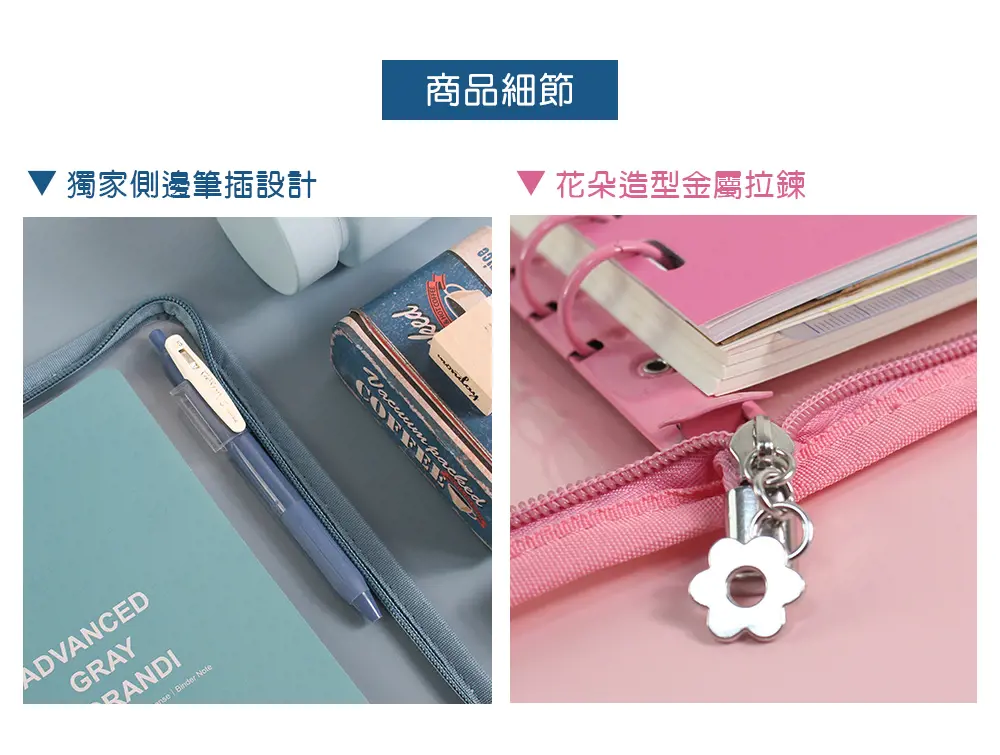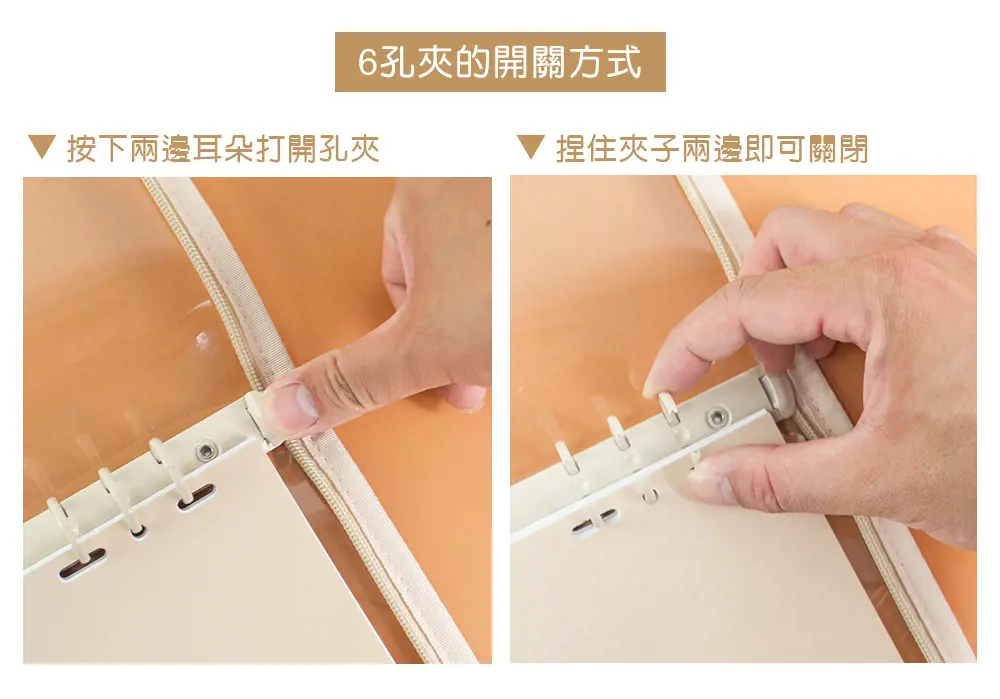 - 莫蘭迪色拉鍊包邊+6孔鐵夾,美觀實用