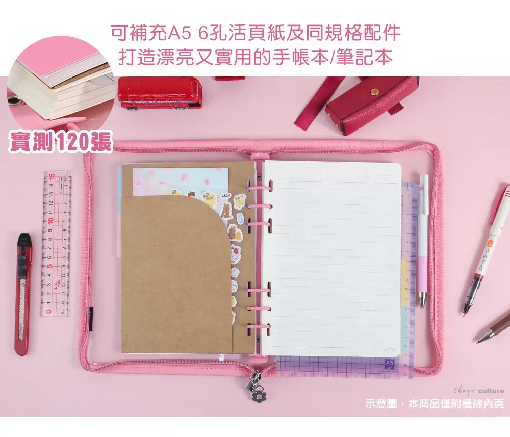 (特價)A5 6孔拉鍊包萬用手冊-珊瑚
