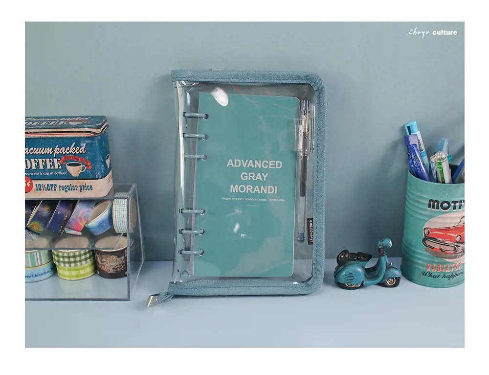 - 莫蘭迪色拉鍊包邊+6孔鐵夾,美觀實用