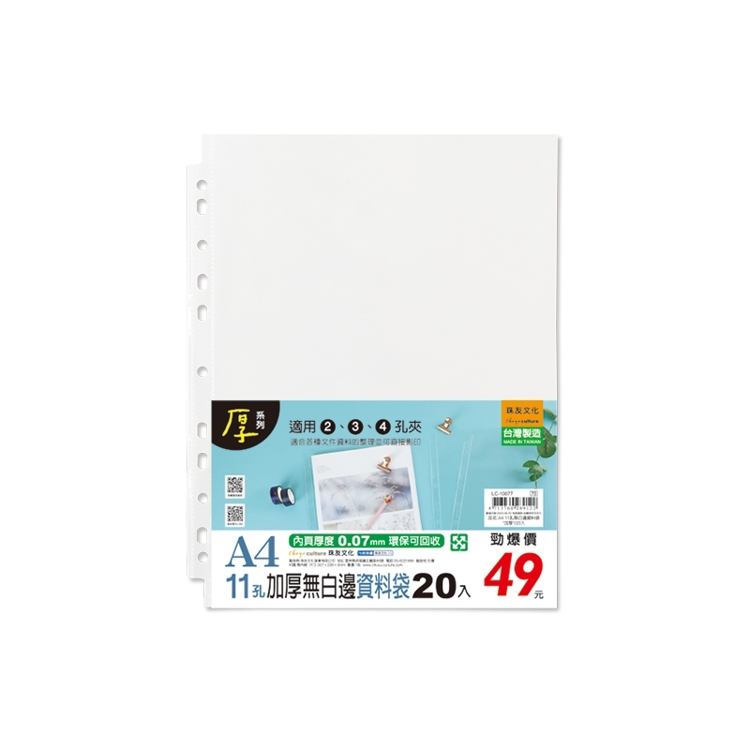 (特價)A4 11孔無白邊資料袋"加厚"/20入