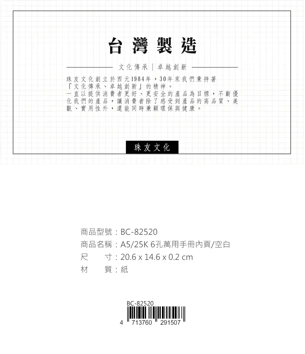 • 採用80磅優良紙張,共20張,可記錄19個月