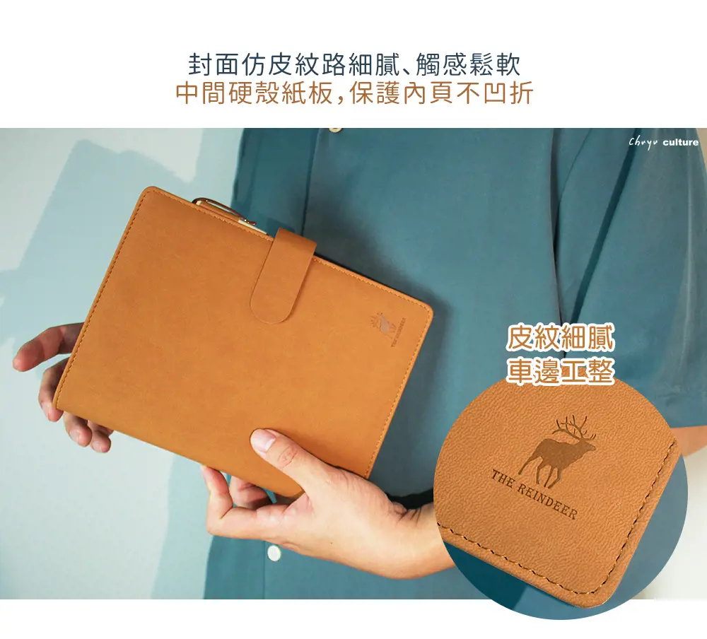 - 濃色封面、駝色內裏,風格商務大方