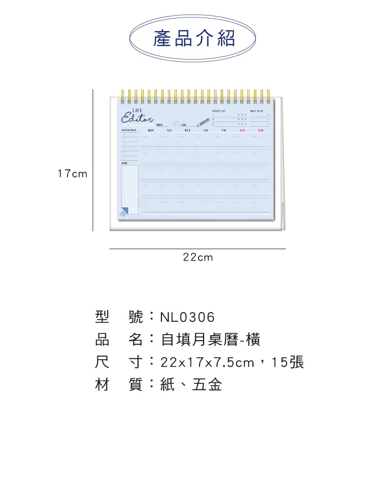 自填月桌曆-橫藍