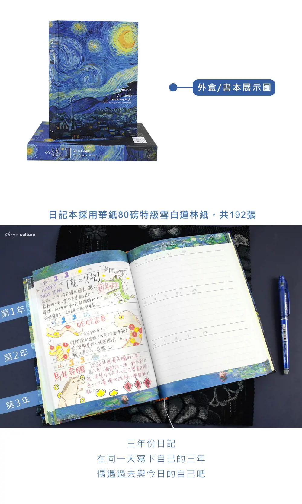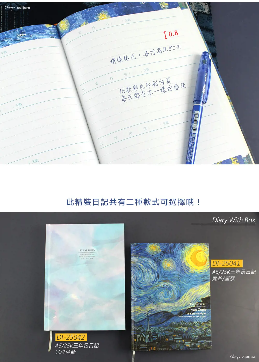 - 日記內頁採用80磅雪白道林紙