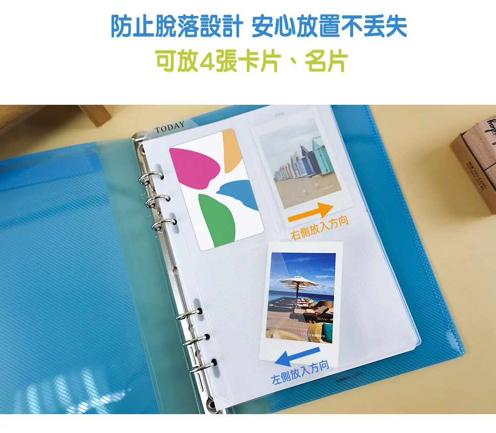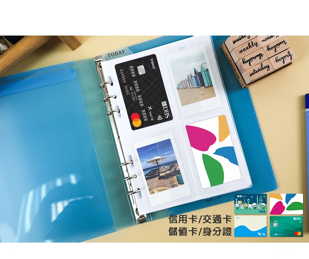 - 可收納拍立得、名片、金融卡、票卡、透卡等卡片