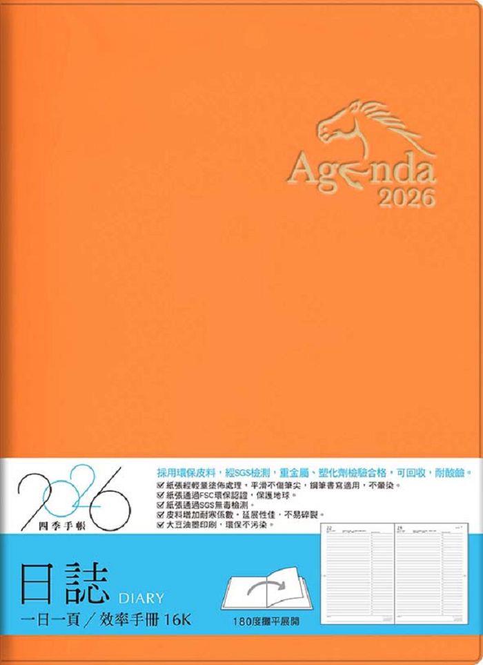 紙張經輕量塗佈處理,平滑不傷筆尖,鋼筆書寫適用,不暈染。附雙色分頁帶一日一頁,效率手冊,可攤平書寫。75g道林紙