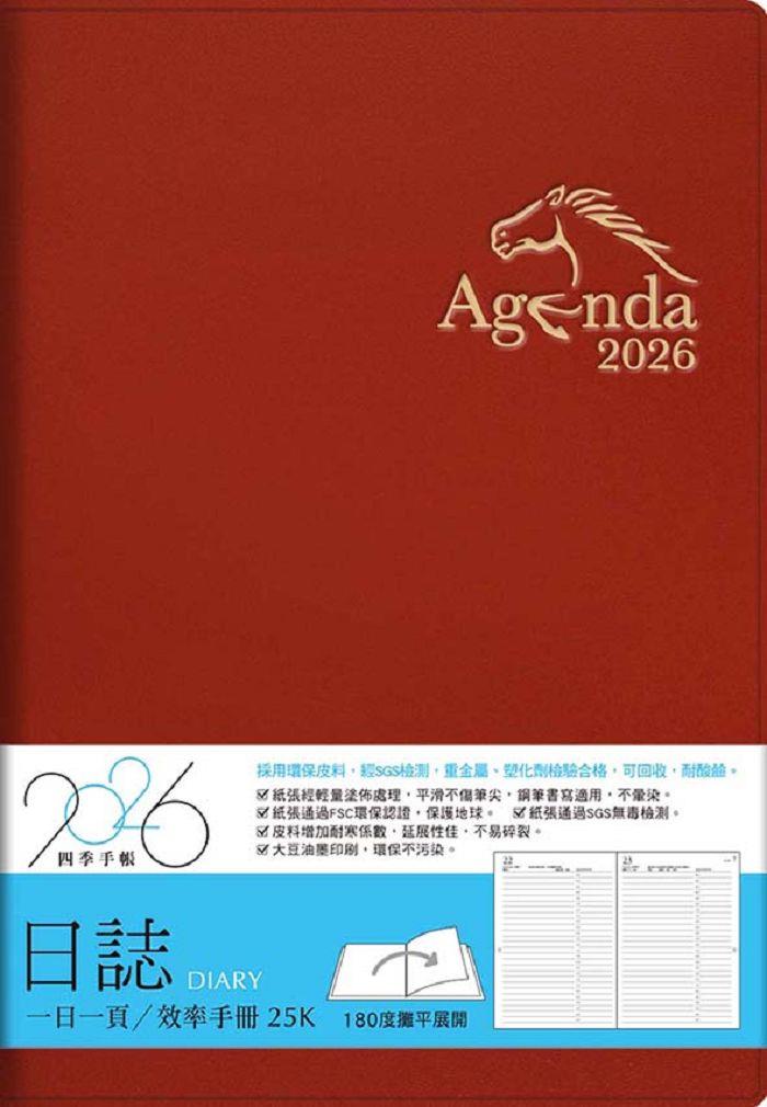 紙張經輕量塗佈處理,平滑不傷筆尖,鋼筆書寫適用,不暈染。附雙色分頁帶一日一頁,效率手冊,可攤平書寫。75g道林紙