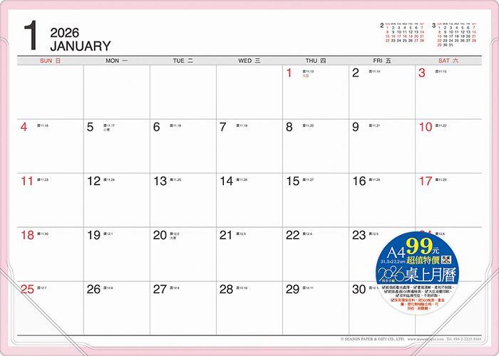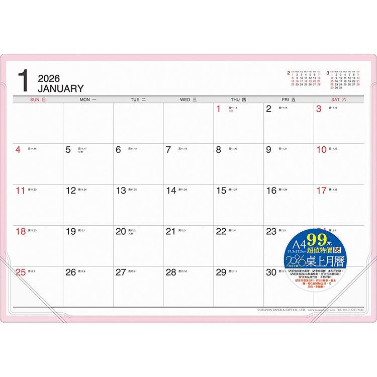 (特價)2026年超值13開桌曆(附墊)粉紅