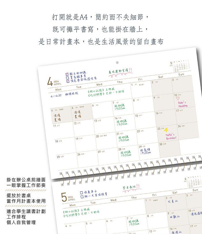 2026日月有時掛曆本|無酸紙內頁 可掛牆也能平攤使用靜靜記下生活的節奏,讓時間為你盛開。