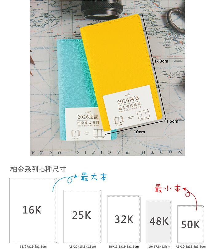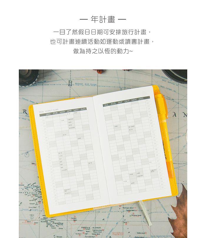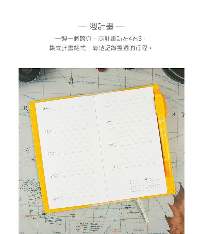 2026年48K柏金皮紋橫式週誌-陽光黃