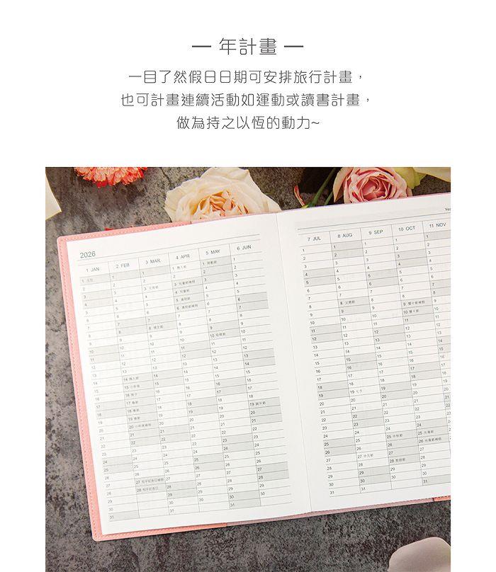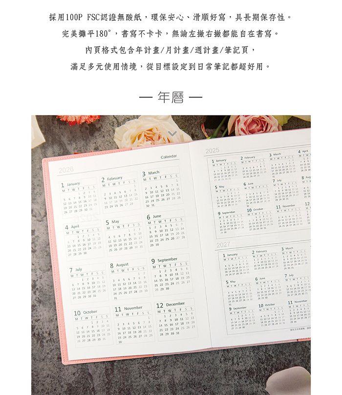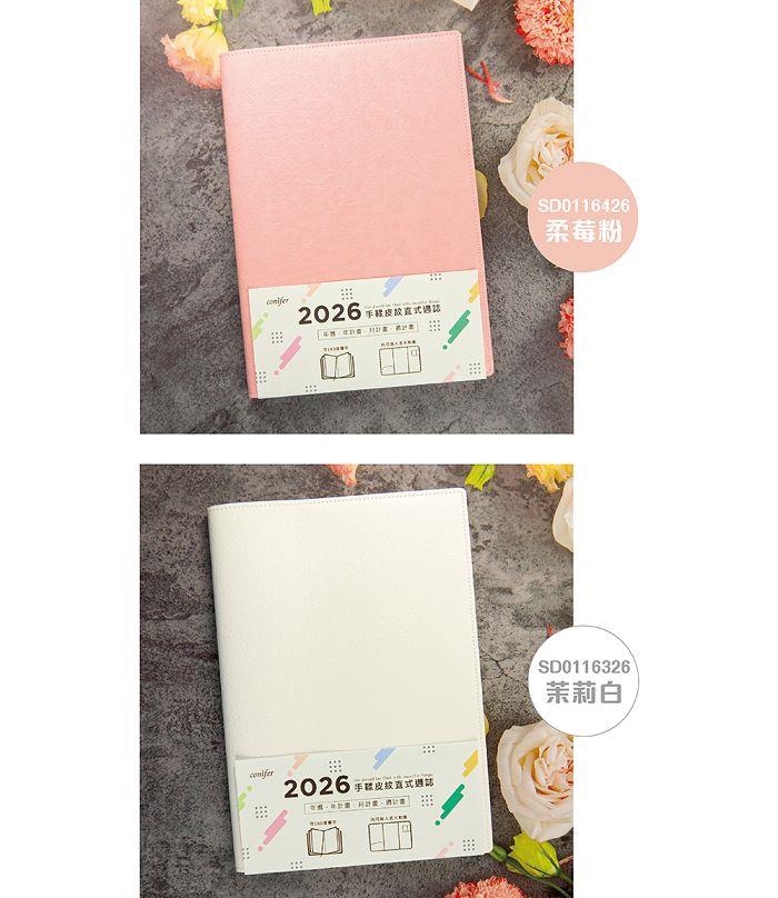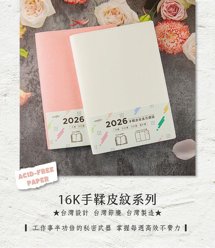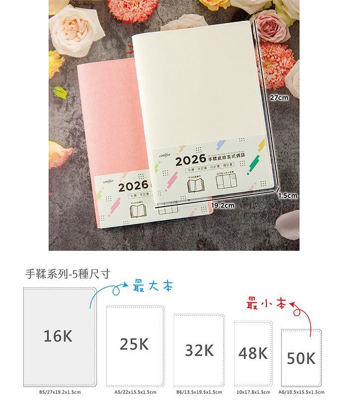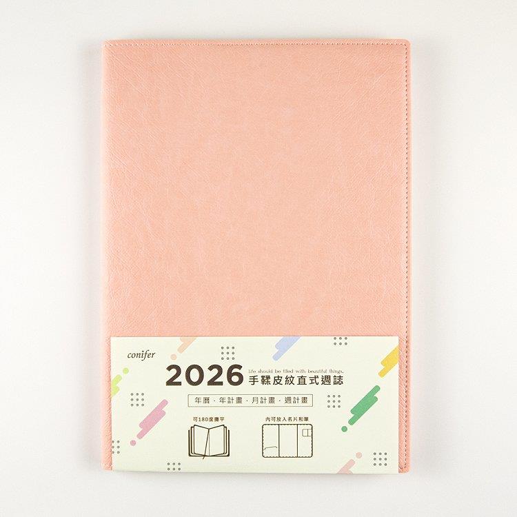 2026年16K手鞣皮紋直式週誌-柔莓粉