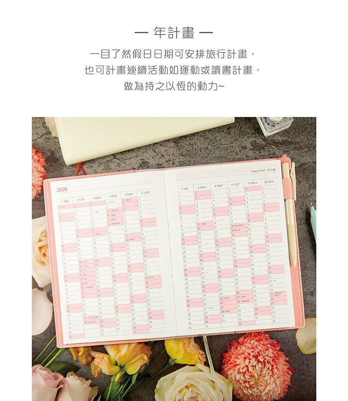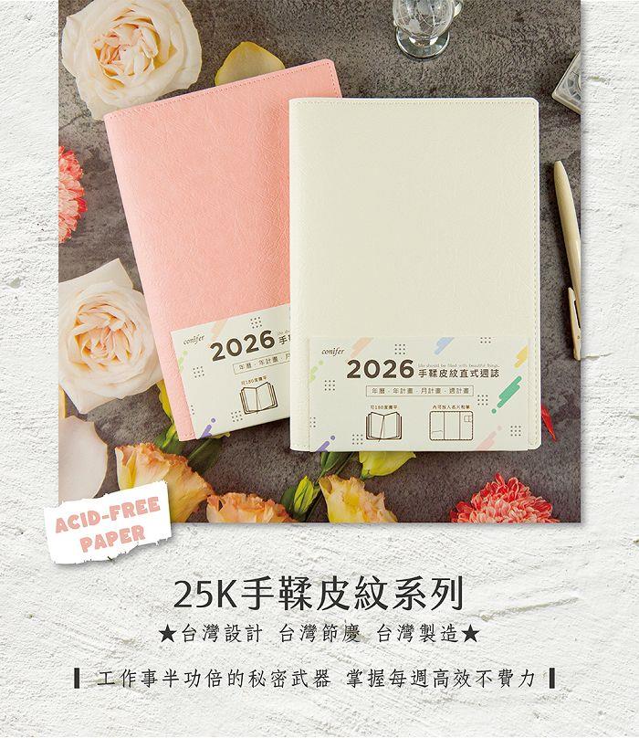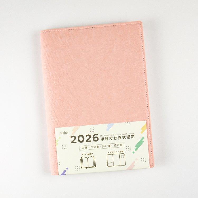 2026年25K手鞣皮紋直式週誌-柔莓粉