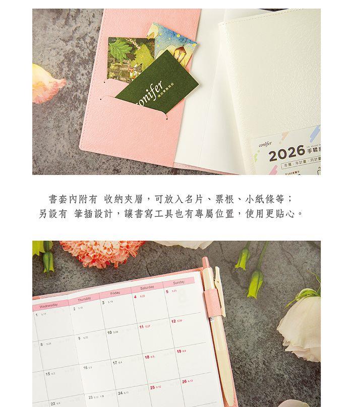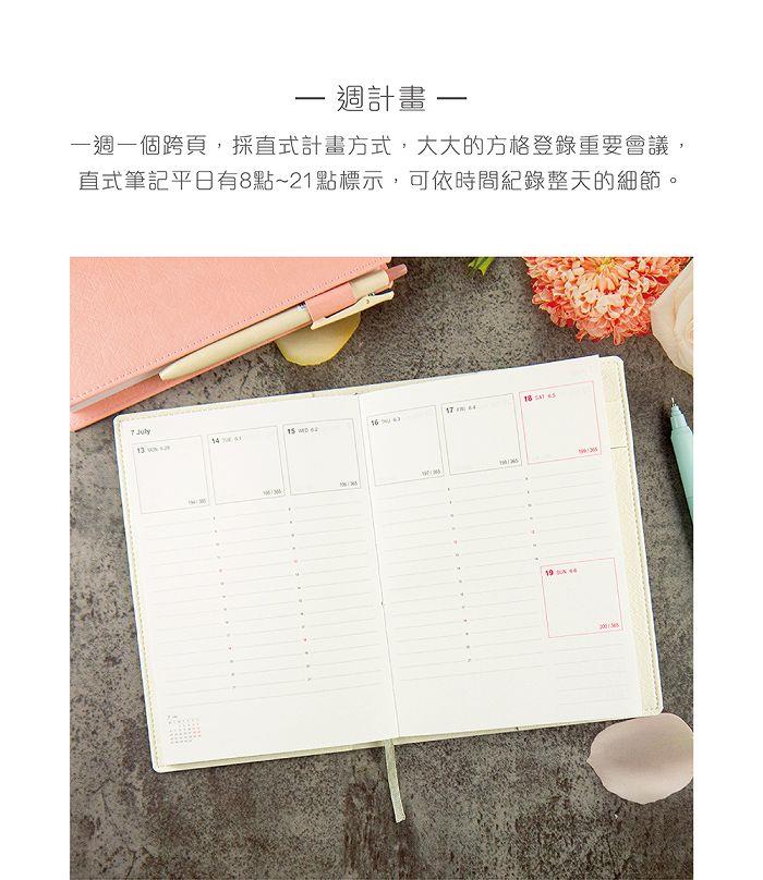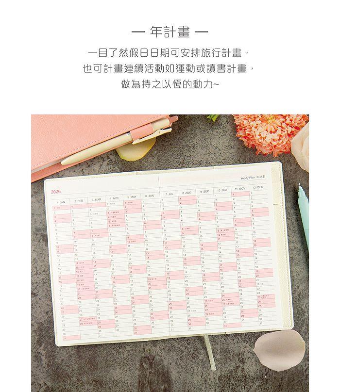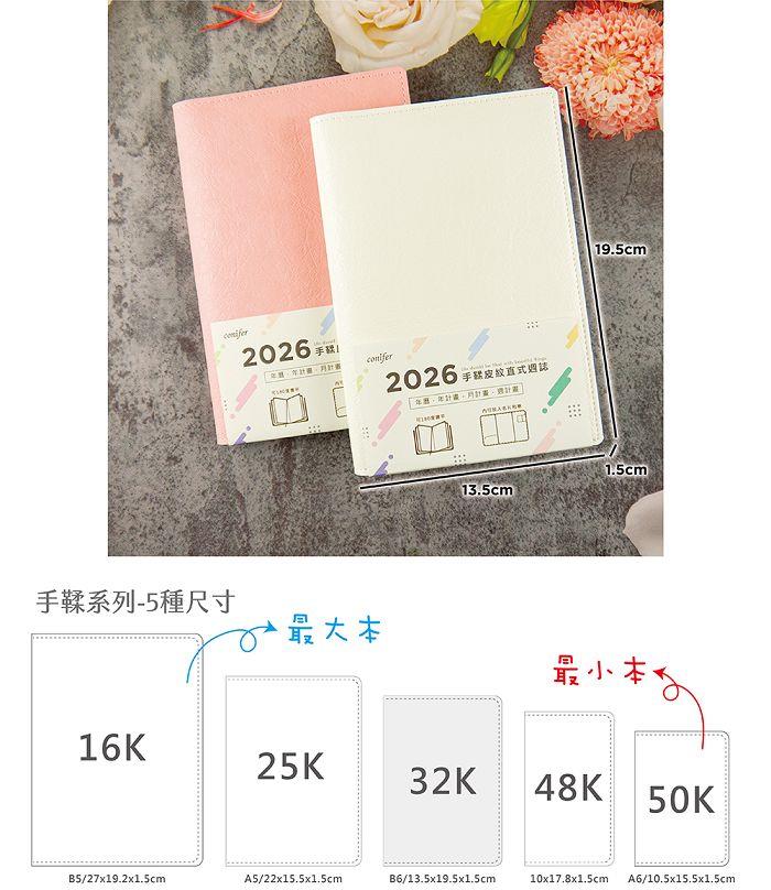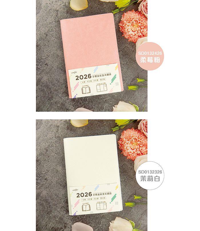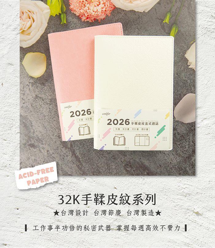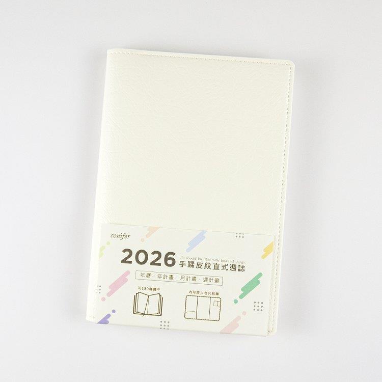 2026年32K手鞣皮紋直式週誌-茉莉白