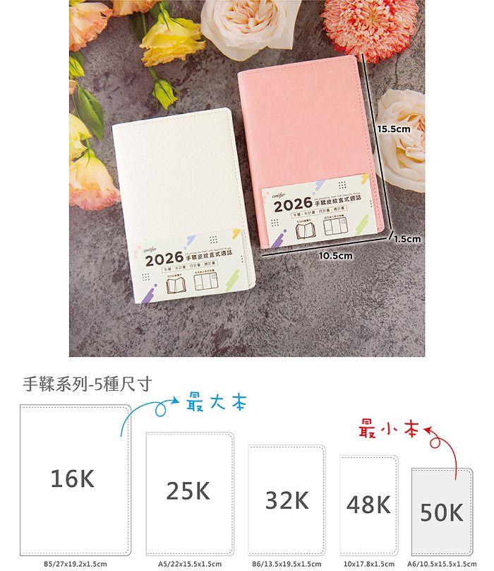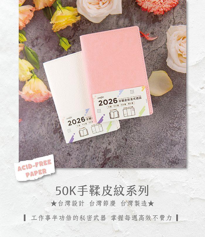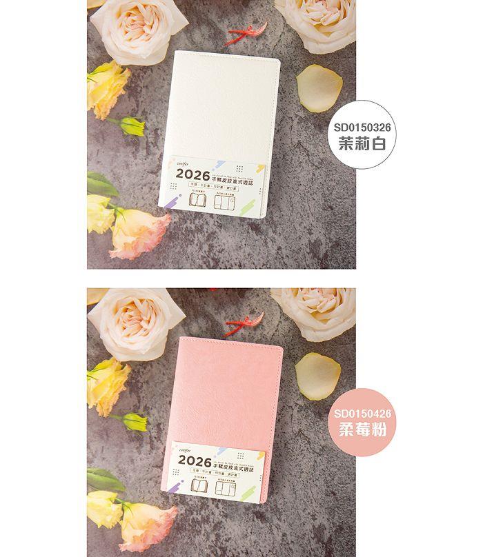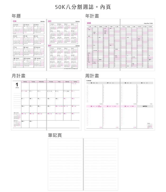 2026年50K手鞣皮紋八分割週誌-柔莓粉