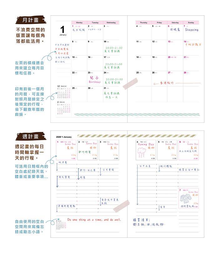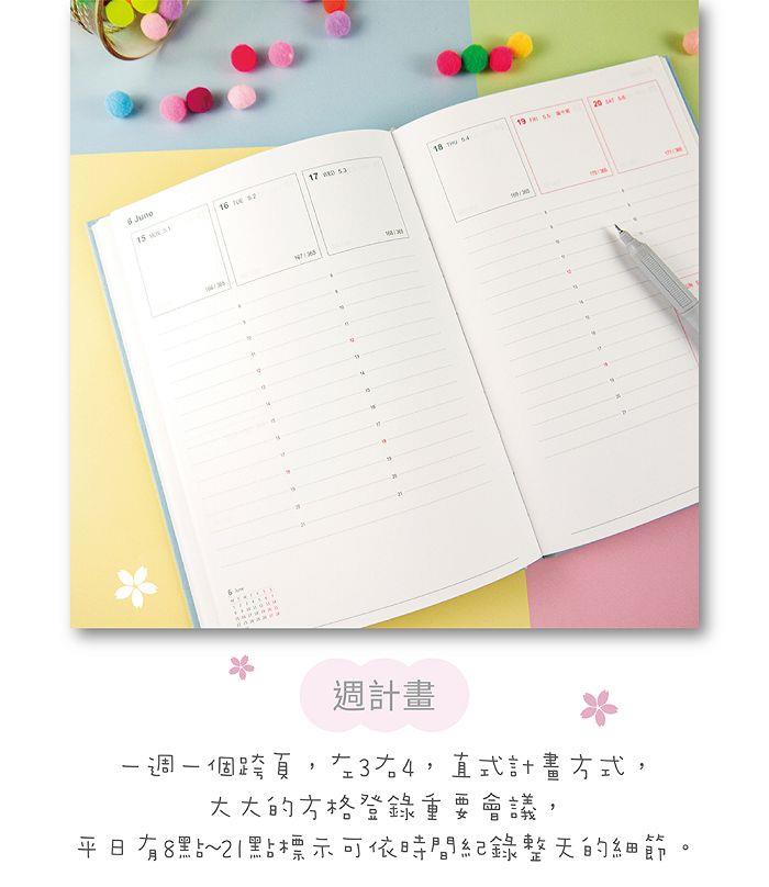 ★台灣設計節慶製造★生活是態度 顏色是個性為自己活出獨有色彩紀錄這一年來所發生的彩色故事4種柔和色彩,展現氣質的你,封面新潮壓紋設計,不怕摩擦,強壯的精裝硬殼不怕碰撞、不怕凹折,硬殼封面在沒有襯墊的情況下,站立時也易於書寫。