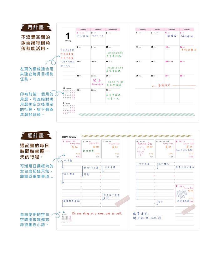 經典荔枝皮紋書套 顯現專業的你經典內頁格式 大大空間足夠記錄精彩的行程內頁採用100P無酸紙,為FSC認證環保紙張,紙質穩定不易滲墨,給予流暢的書寫手感,可以180度攤平,跨頁部分也能平整書寫。