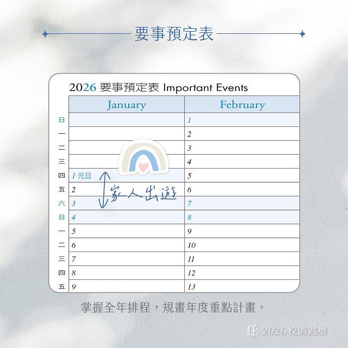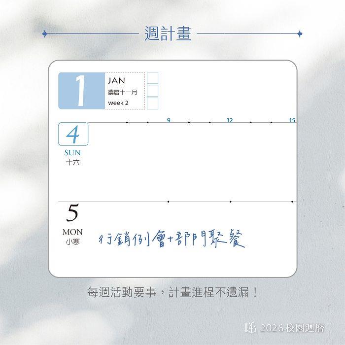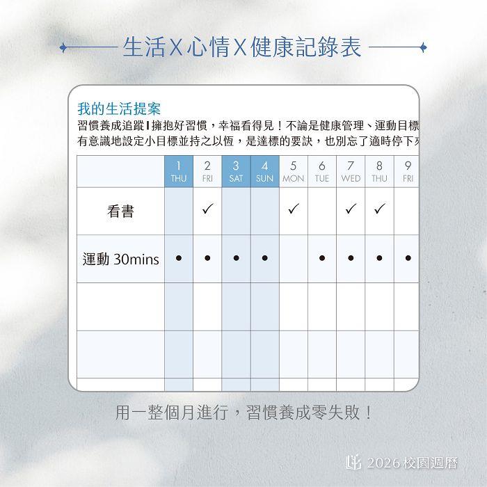 2026校園週曆經典版25K橫式週誌硬皮精裝(幸福米)