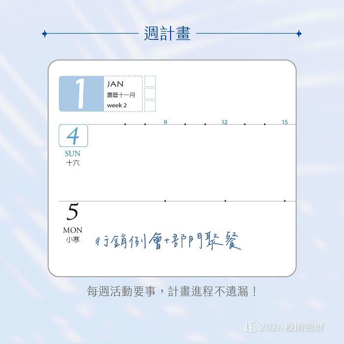2026校園週曆經典版25K橫式週誌卡紙精裝(碧海藍天)