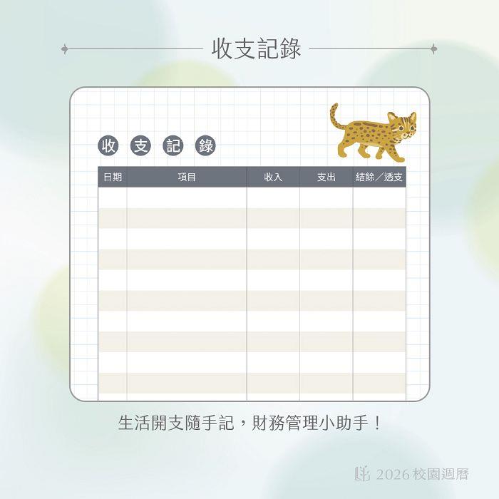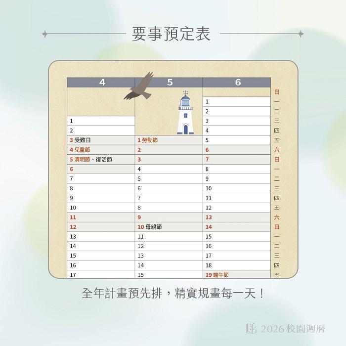 2026校園週曆新標竿48K月計畫膠皮騎馬釘 (好幸虎)