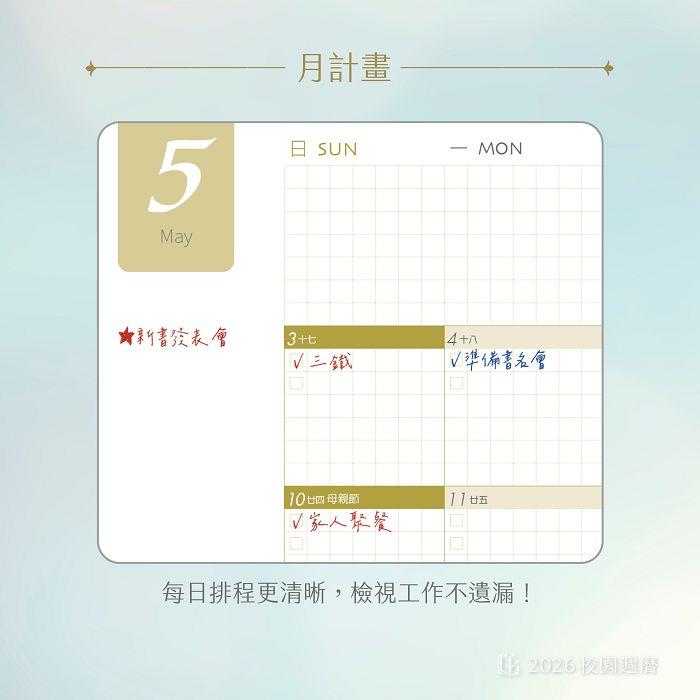 2026校園週曆do手帳32K方眼格直式左翻週誌 (出企玩)