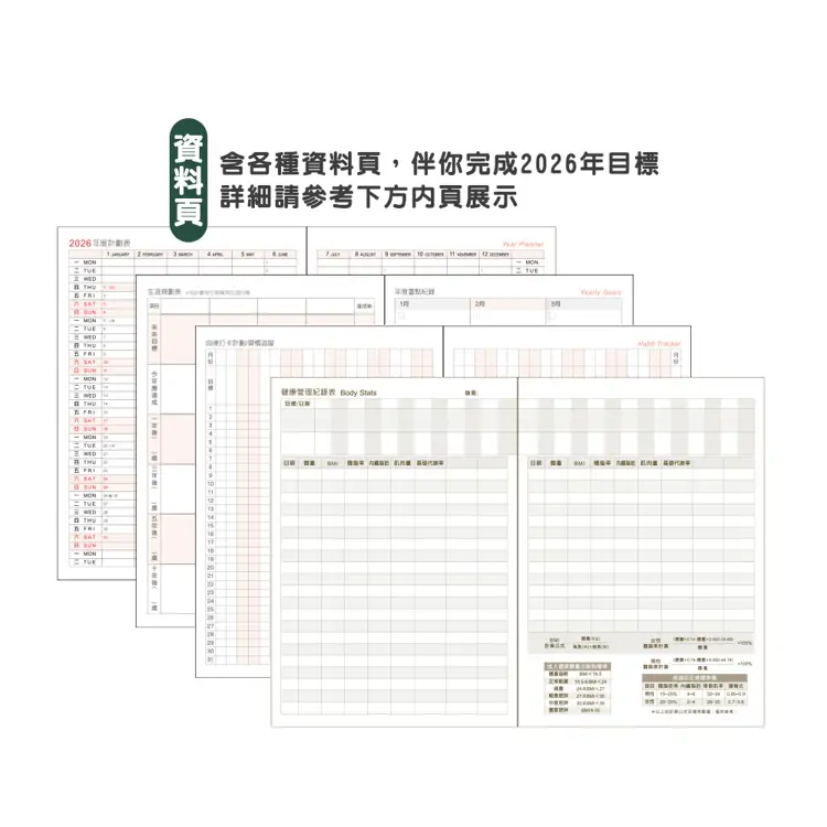 - 含各種資料頁,規劃所有行程、寫下自我成長