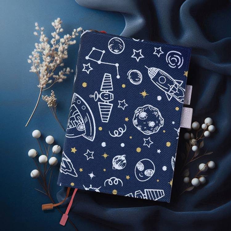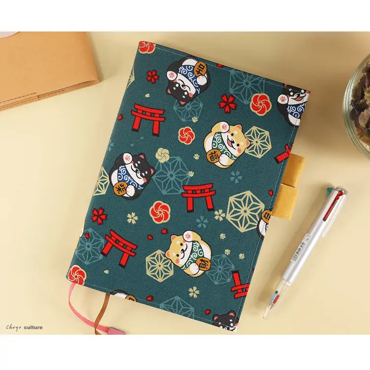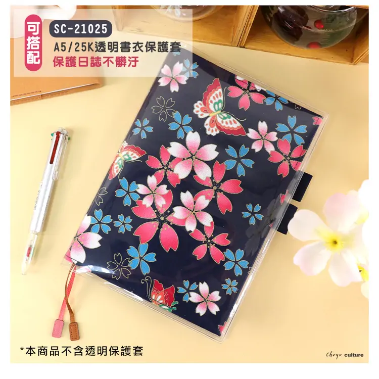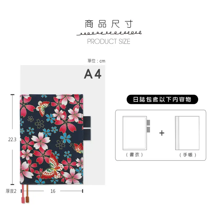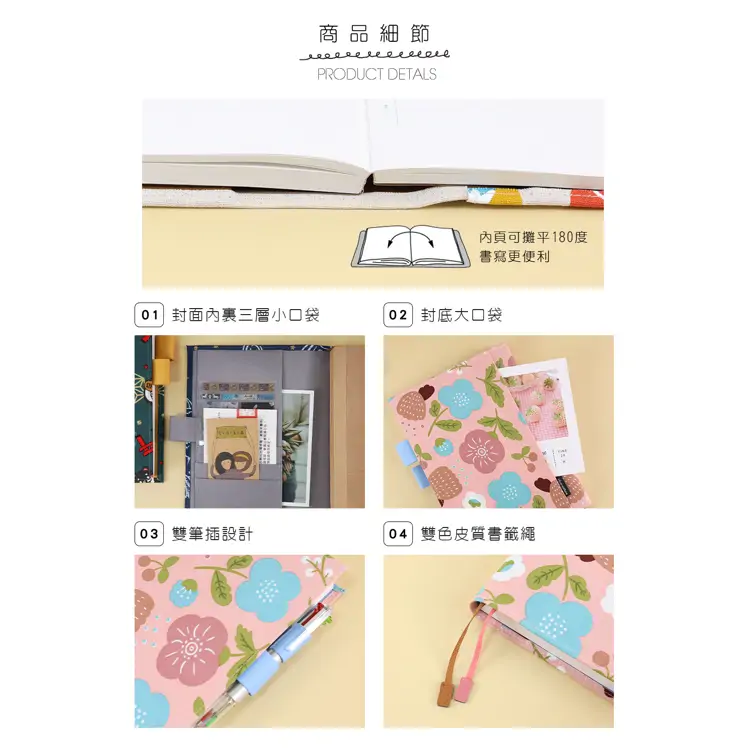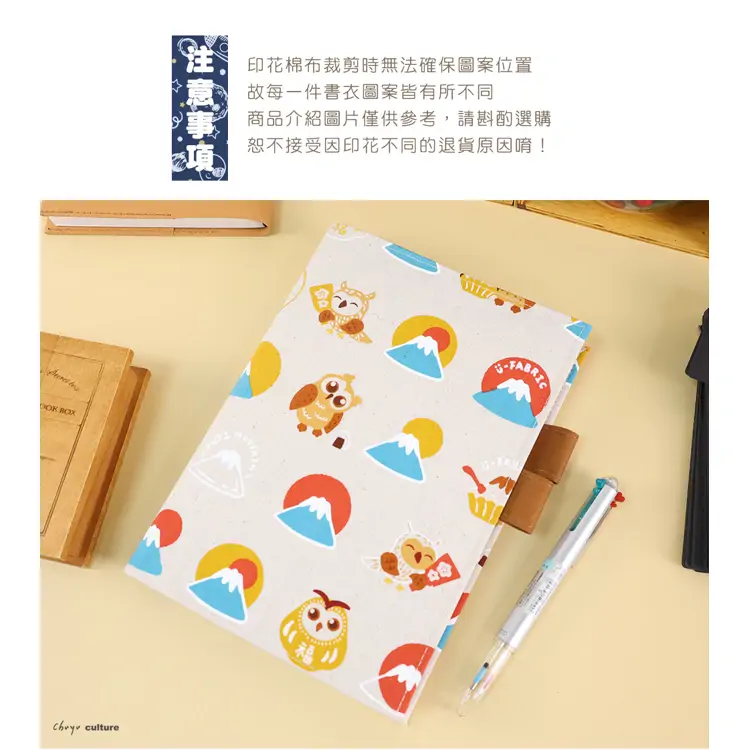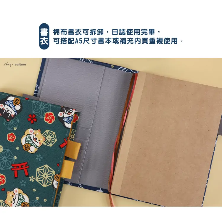 - 花布書衣可攜帶筆具、收納小物