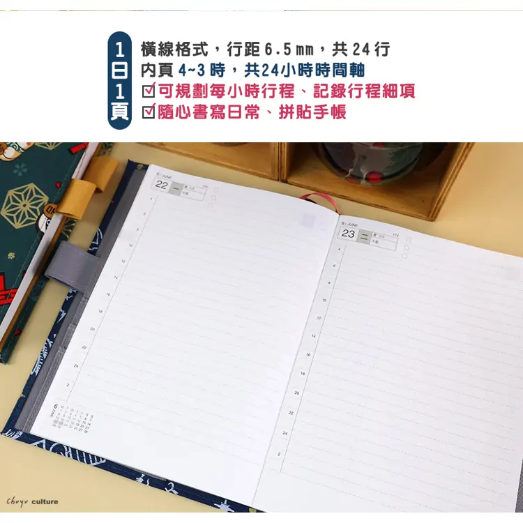 - 橫線1日1頁,可隨心書寫生活、依時間軸詳細記錄事項