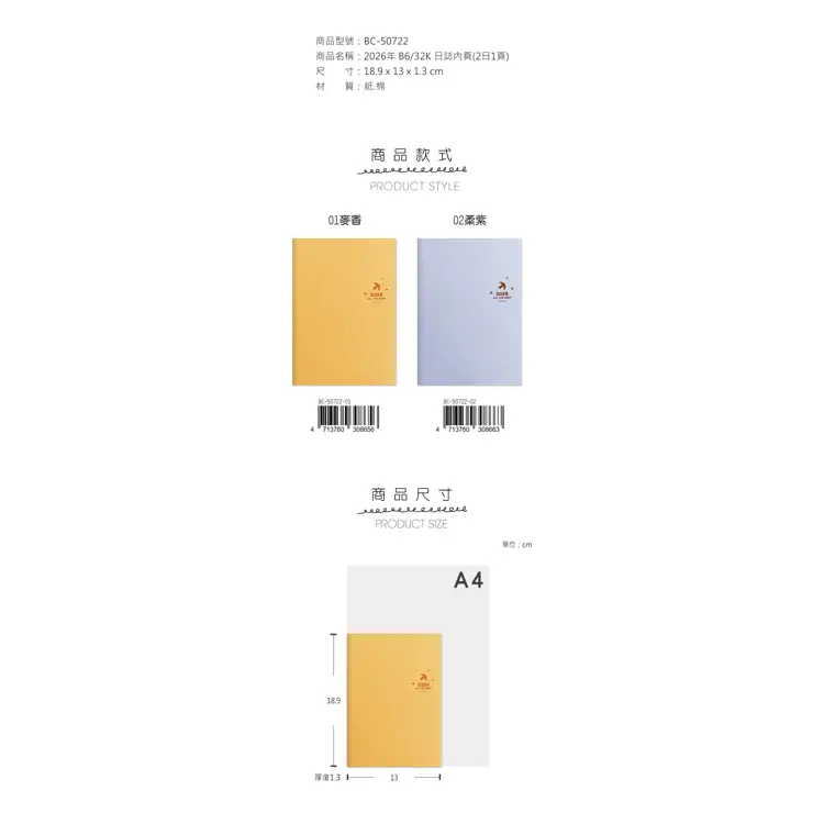 (特價)2026年B6日誌內頁(2日1頁)-麥香