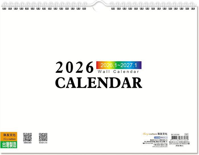 (特價)2026年12K吊掛式月曆(素面/橫式)