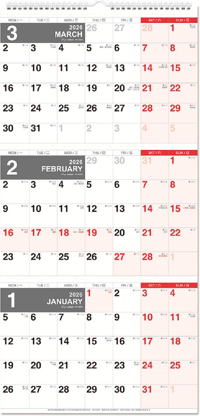(特價)2026年吊掛式3月式月曆(可撕)